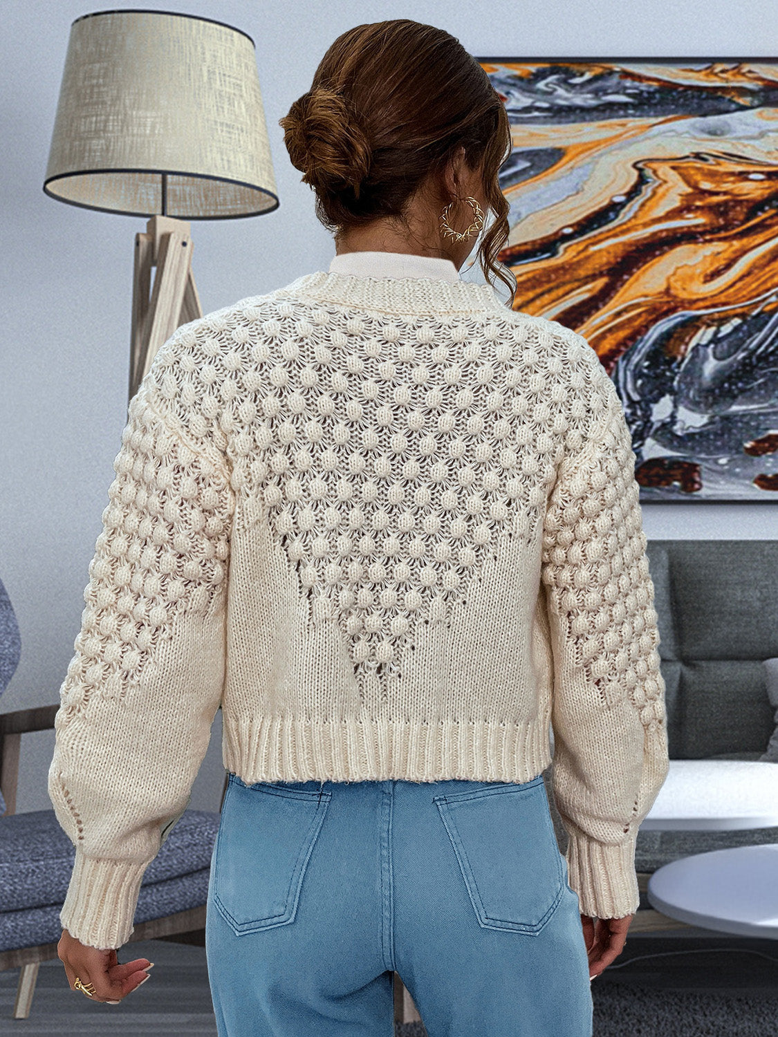 Button Front Ribbed Trim Cardigan