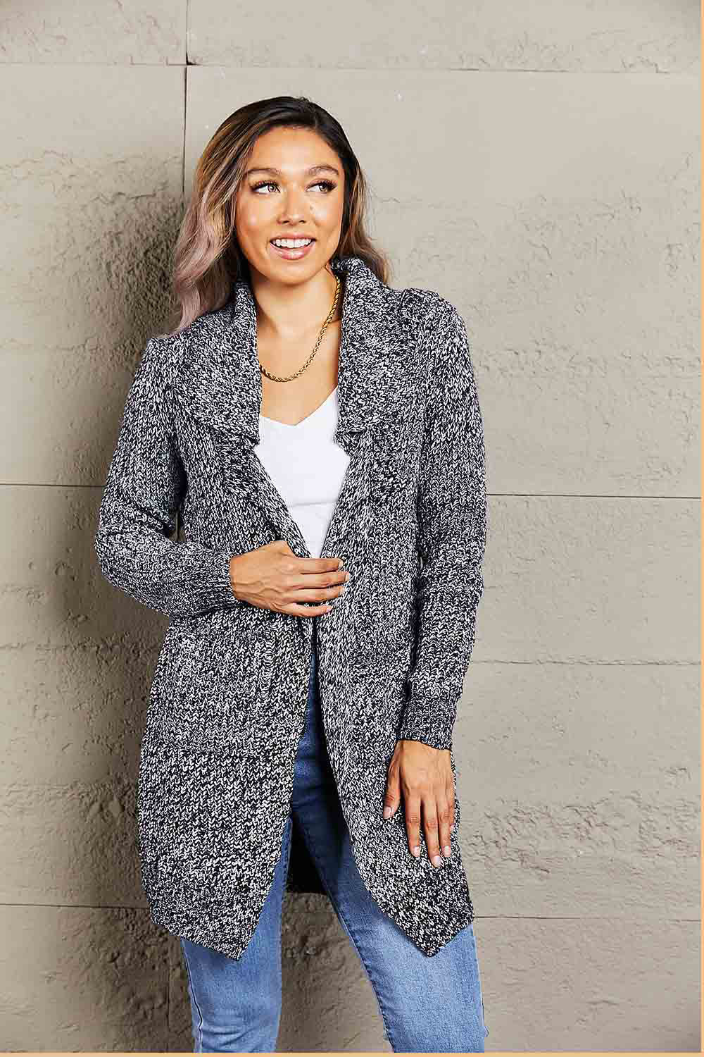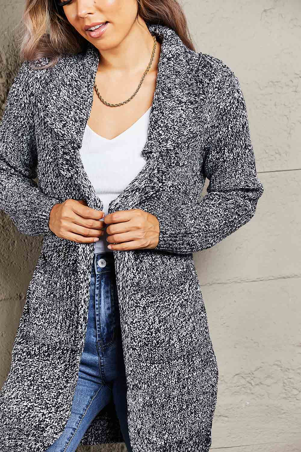 Woven Right Heathered Open Front Longline Cardigan with Pockets