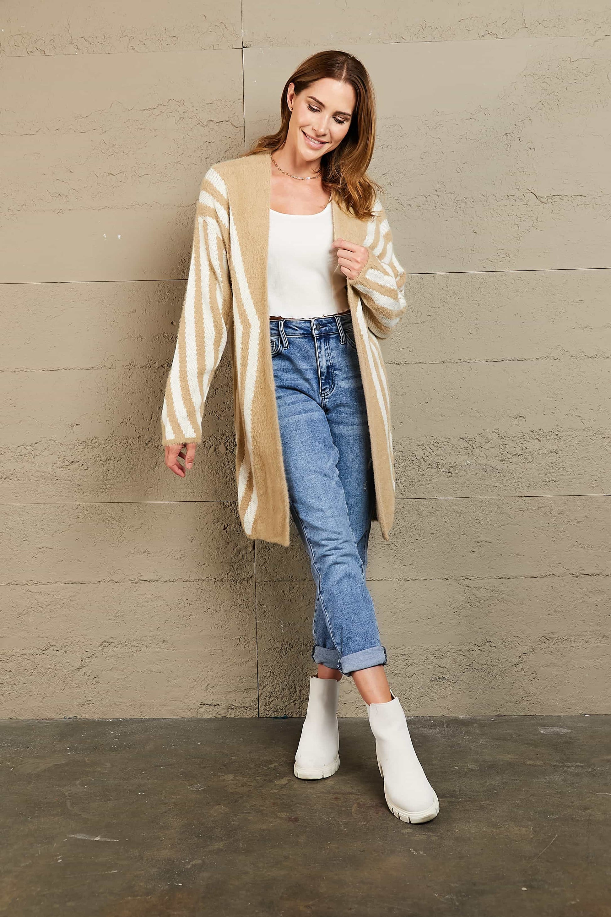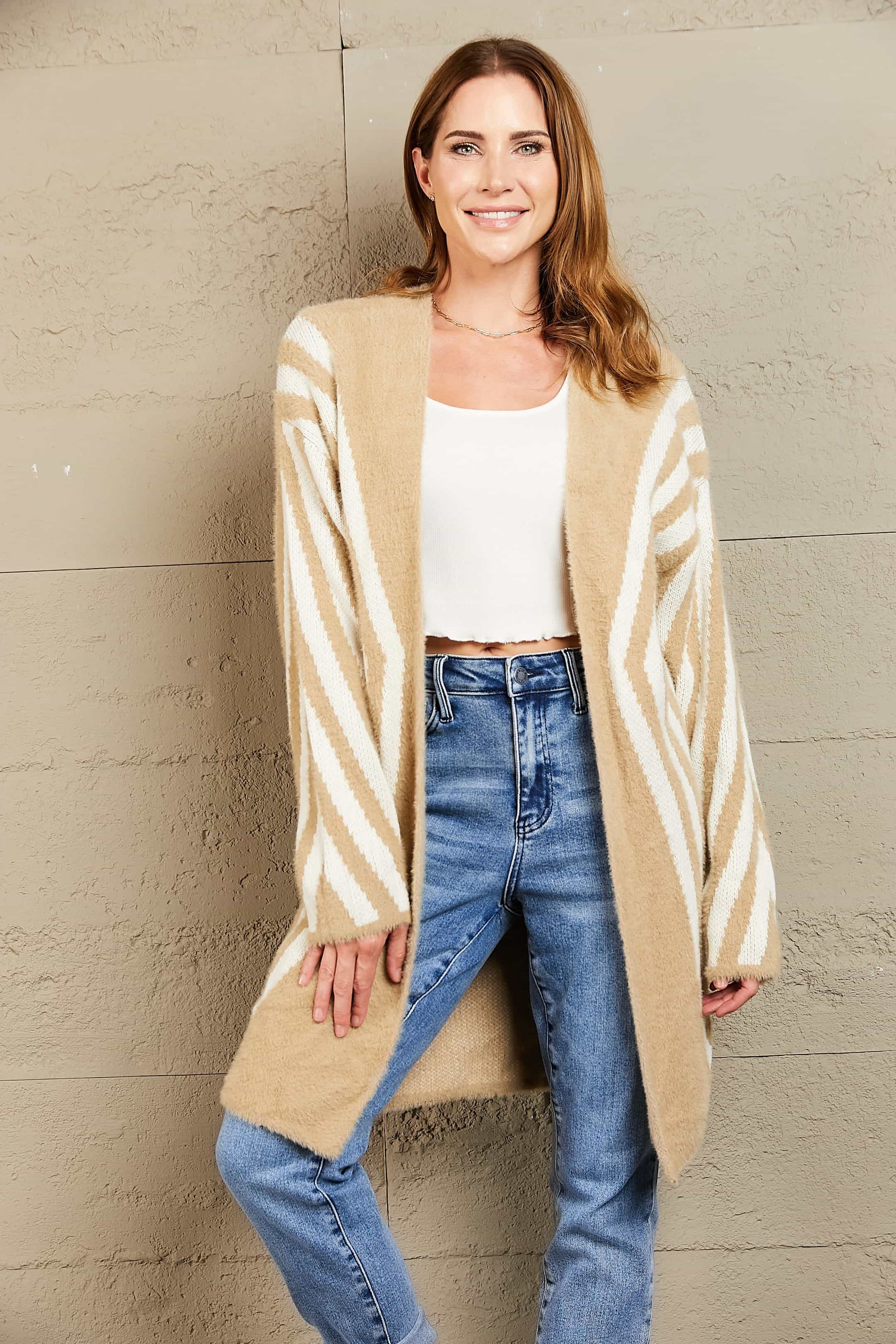 Woven Right Two-Tone Open Front Fuzzy Longline Cardigan